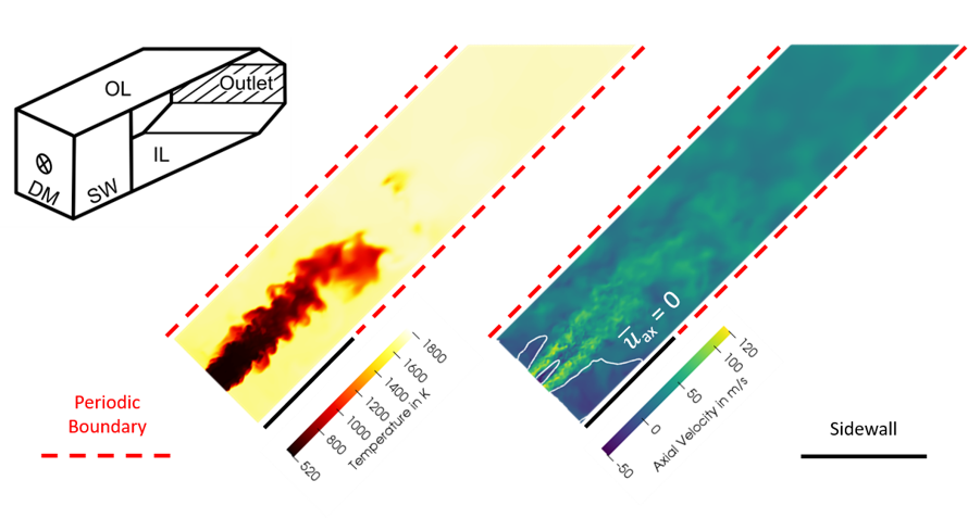 LES reactive numerical approach was then setup and validated on a literature test case (see Figure 1). The approach was then used to investigate the CHAIRLIFT concept to optimize the contouring of the side wall (see Figure 2).