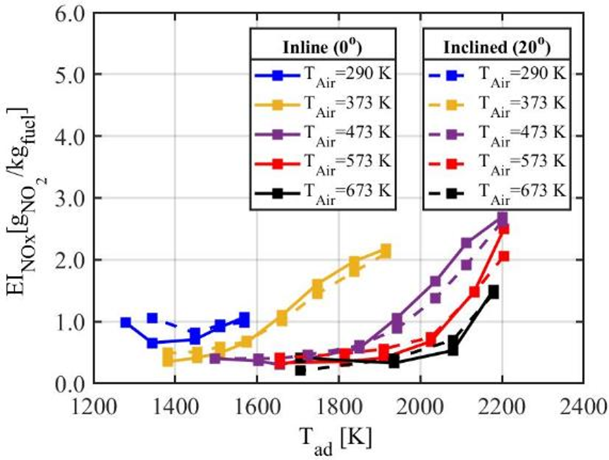 - Mapping of NOx emissions measured at lab scale conditions up to representative MTO conditions for reference engine cycles.