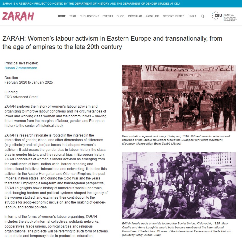 Periodic Reporting for period 4 - ZARAH (Women’s labour activism in Eastern Europe and transnationally, from the age of empires to the late 20th century)