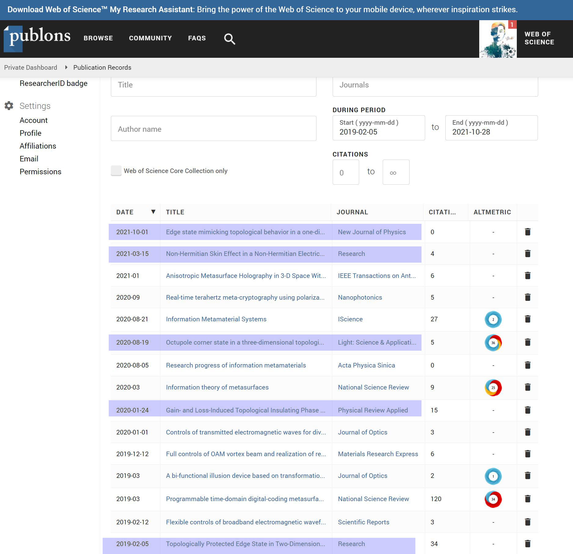 [P1] Liu S, Shao R, Ma S, et al. Non-Hermitian skin effect in a non-Hermitian electrical circuit [J]. Research, 2021, Article ID 5608038.
