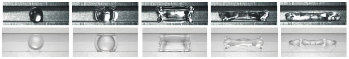This approach enabled simulations with realistic density contrast between liquid and its vapor, for the first time performing dynamic simulations of droplets coalescence of heavy liquid as mercury.