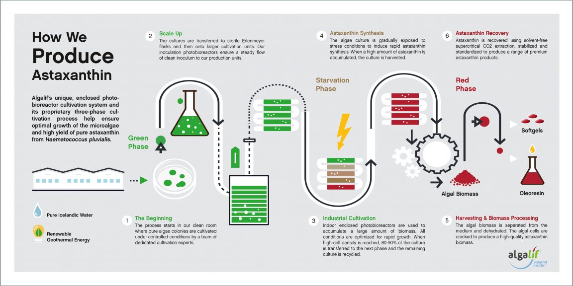 Algalíf´s solution to the problem, comes through cultivation of microalgae and commercial production of fucoxanthin for weight loss products. Through current production of astaxanthin, Algalíf has developed a niche in the global microalgae arena in optimising cultivation parameters. The indoor, photobioreactor (PBR) cultivation systems at Algalíf, with full contamination control and no supply disruptions, ensure optimal growth of microalgae. Currently, it delivers the highest industry reported yield of a pure product (7%) for astaxanthin. This sustainable cultivation method will be adapted to the commercial-scale production of fucoxanthin. This will diversify the production and enable Algalíf to reach markets currently mainly served from not very stable products derived from macroalgae.