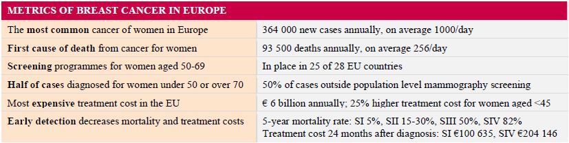 Our goal is to offer a device for cost-efficient, non-invasive and accurate breast check, which could be easily performed e.g. part of yearly general health exams or gynaecological visits. Near 50% of the breast cancers are detected outside the screening programs. Our method utilizes a patented infrared-wavelength scanning method, which looking for suspect time-variant patterns caused by abnormal tumour vasculature. See figure 1 for socio-economic factors of breast cancer in EU.