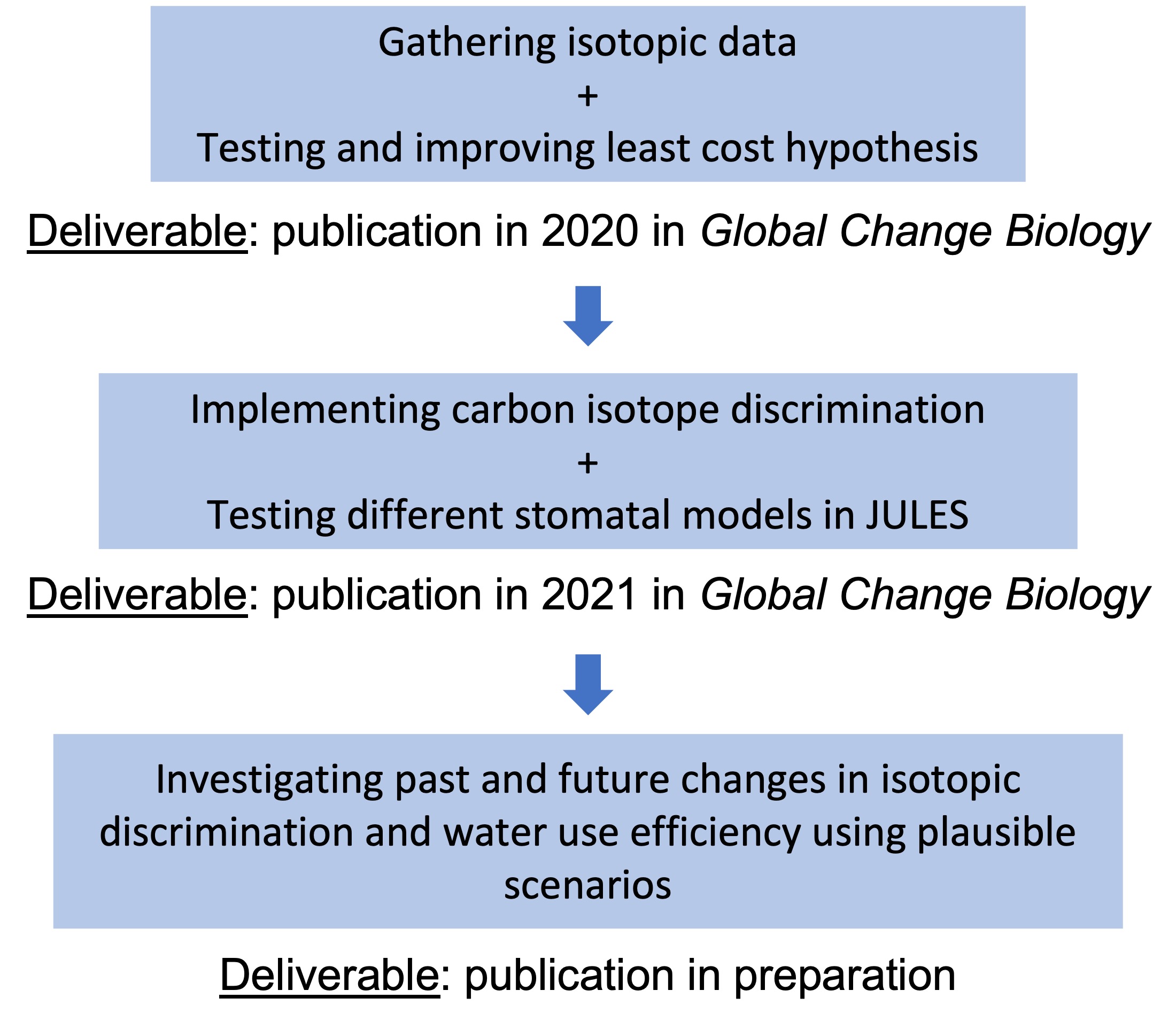 The aim of the project was to develop the use of stable carbon isotopes (∆13C) in the UK land surface model (JULES) to improve the representation of the key processes regulating the coupled carbon and water cycles and their responses to environmental changes in the model and to investigate past and future changes in ∆13C and WUE over the globe.