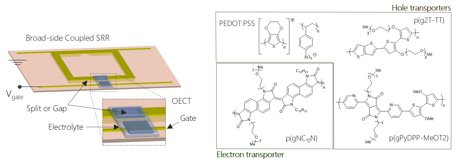 During the initial stages of the project, we demonstrated the operation of these novel microwave devices with an emerging class of high-performance organic mixed ion-electron conductors. Thanks to a collaboration with the group of Prof. Iain McCullough (University of Oxford), we were able to demonstrate devices operating in both depletion and accumulation modes, with both p-type and n-type operation.
