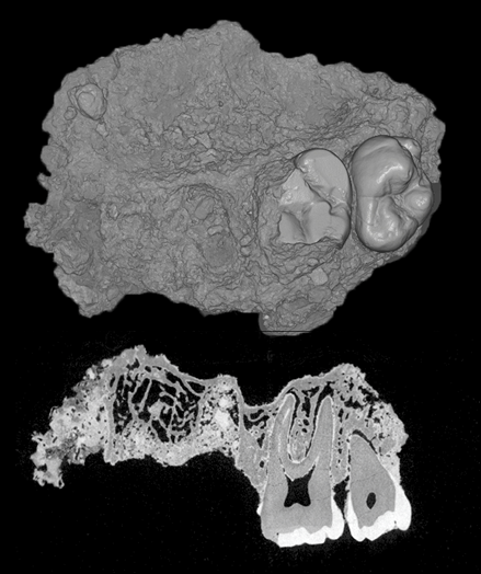 In addition to the external observations made on teeth that can be viewed with the naked eye or low magnification, we used advanced virtual imaging technologies to explore the morphology that is found beneath the surfaces of teeth. Virtual images were created using non-destructive, x-ray microcomputed tomography (microCT) to obtain high-resolution images of internal dental morphology that could be reconstructed for three-dimensional (3D) analysis of tissue proportions (i.e. the relative amount of enamel, dentin, and pulp), the shape of the enamel-dentin junction (where the enamel and dentin meet), and enamel thickness. These variables provide fine-grained insights into human population dynamics that may not be possible from external morphology (e.g. because tooth wear during life removes relevant cusp morphology) or aspects of selection—such as changes in tissue proportions or enamel thickness—that may correspond to changing diet and food processing technology throughout human evolution.
