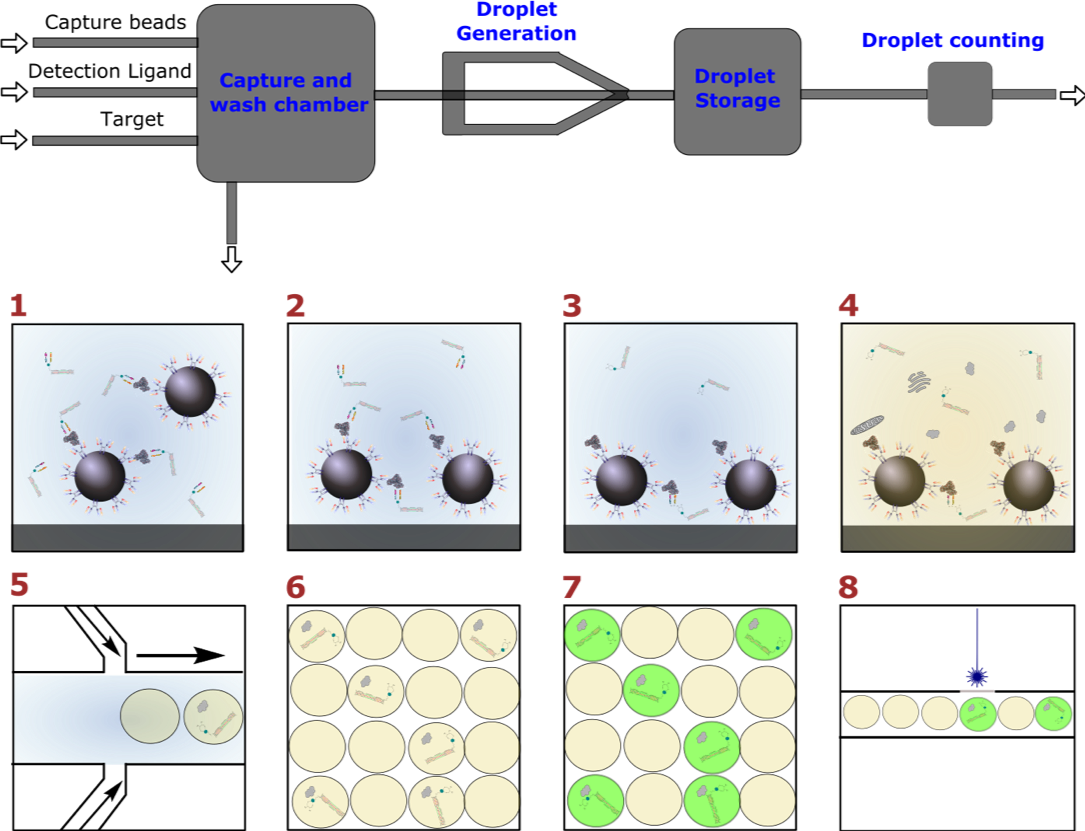 I have focused on exploring multiple avenues for partitioning the cell-free biosensor system into femtoliter volumes. This is necessary to create a highly automatable ultrasensitive digital diagnostic platform from the synthetic biology-driven biosensor I developed in parallel. I explored two routes for doing this – a droplet-based method and a glass microarray method. Broadly, I achieved the following objectives: