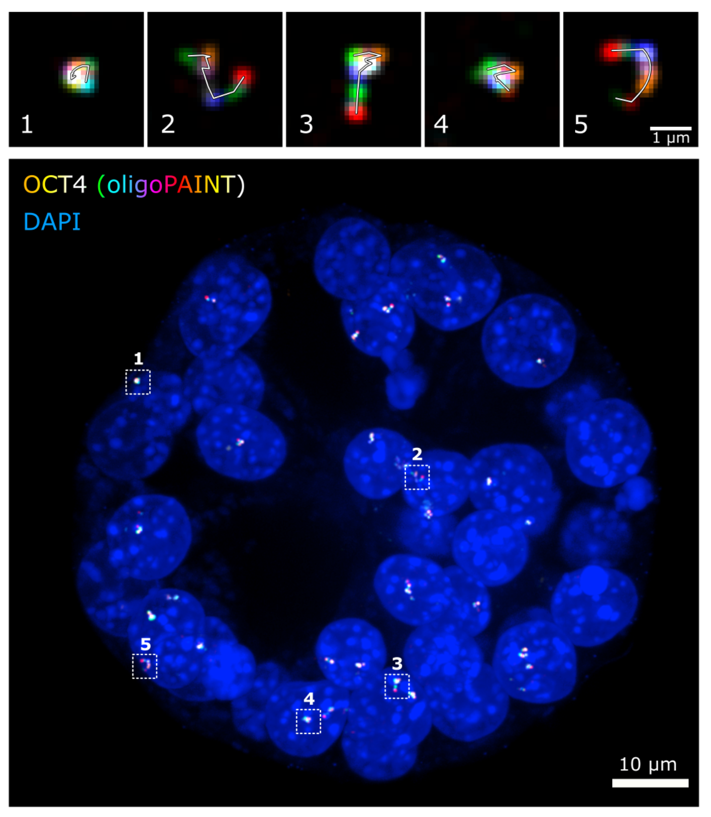 In order to study the relationship between these structural changes of DNA and the first cell fate decisions during mammalian development, this project aimed at i) developing a technology that would allow us to interrogate DNA structure at the nanoscale in whole preimplantation mouse embryos and ii) use this technology to gain insights into the structural changes occurring at a set of marker genes which are activated during the first cellular differentiation step in early embryogenesis.
