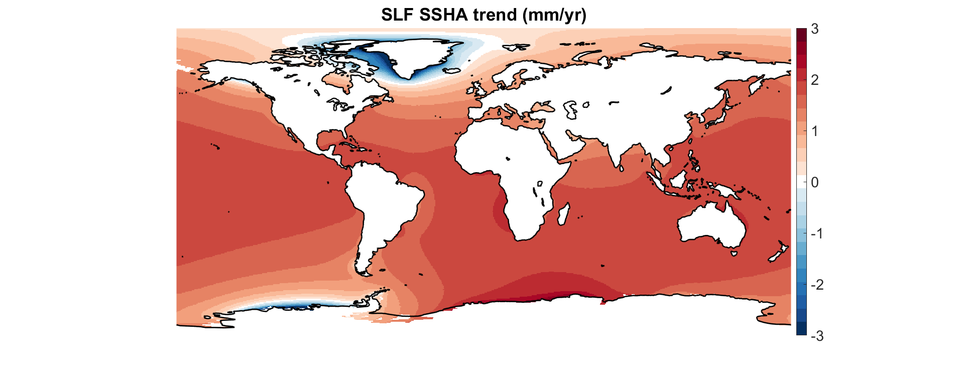 I have been able to process latest GRACE gravity field products and have developed tools to map the response of sea level to temporal changes in the gravity field of the Earth, commonly known as Sea Level Fingerprints. They represent the spatial distribution of sea level rise due to mass redistribution. We can clearly see that ice mas loss in Greenland and East Antarctica leads to a drop in relative sea level near these regions, while rest of the oceans is observing a rise in relative sea surface heights (see the attached figure).