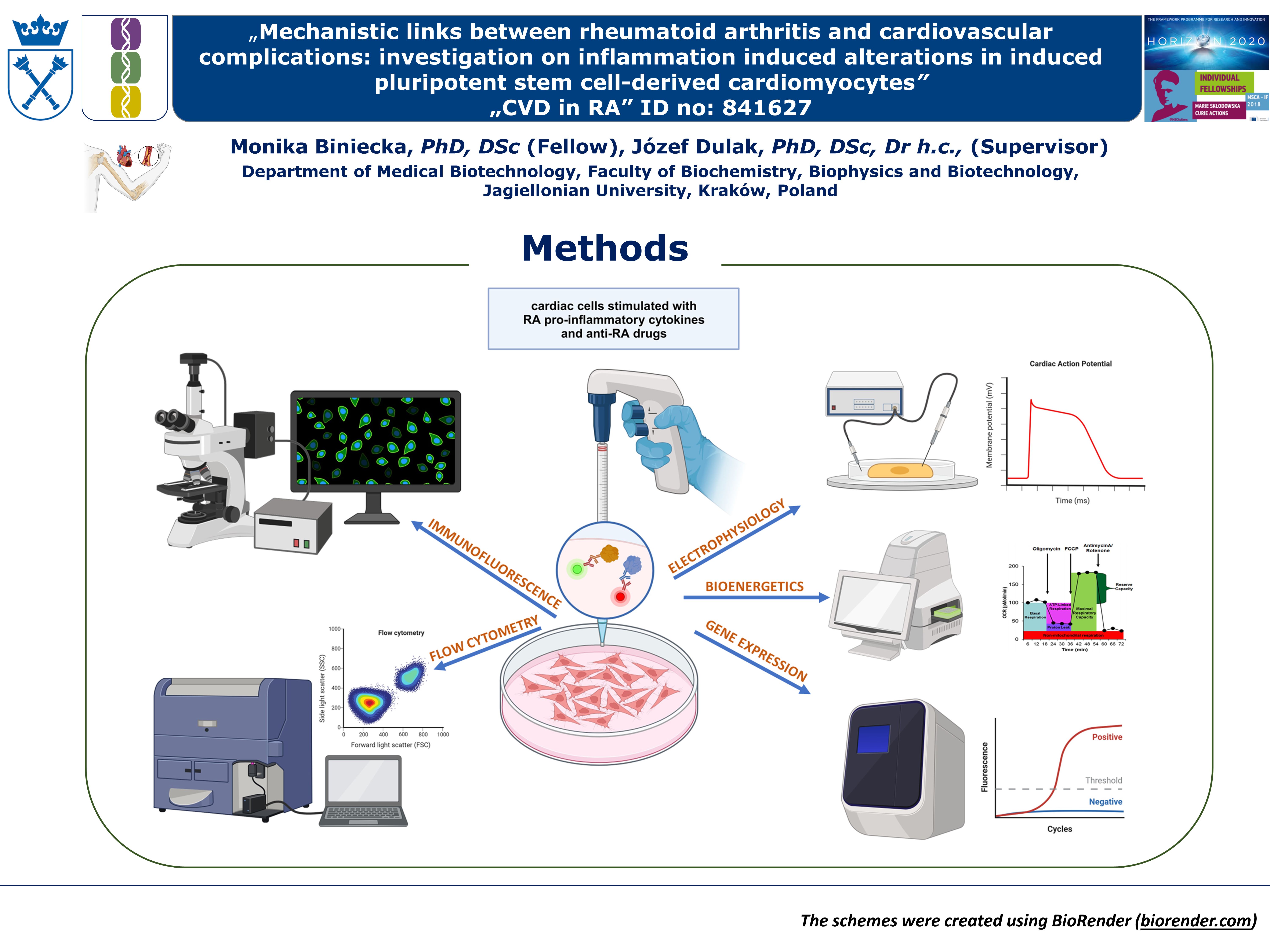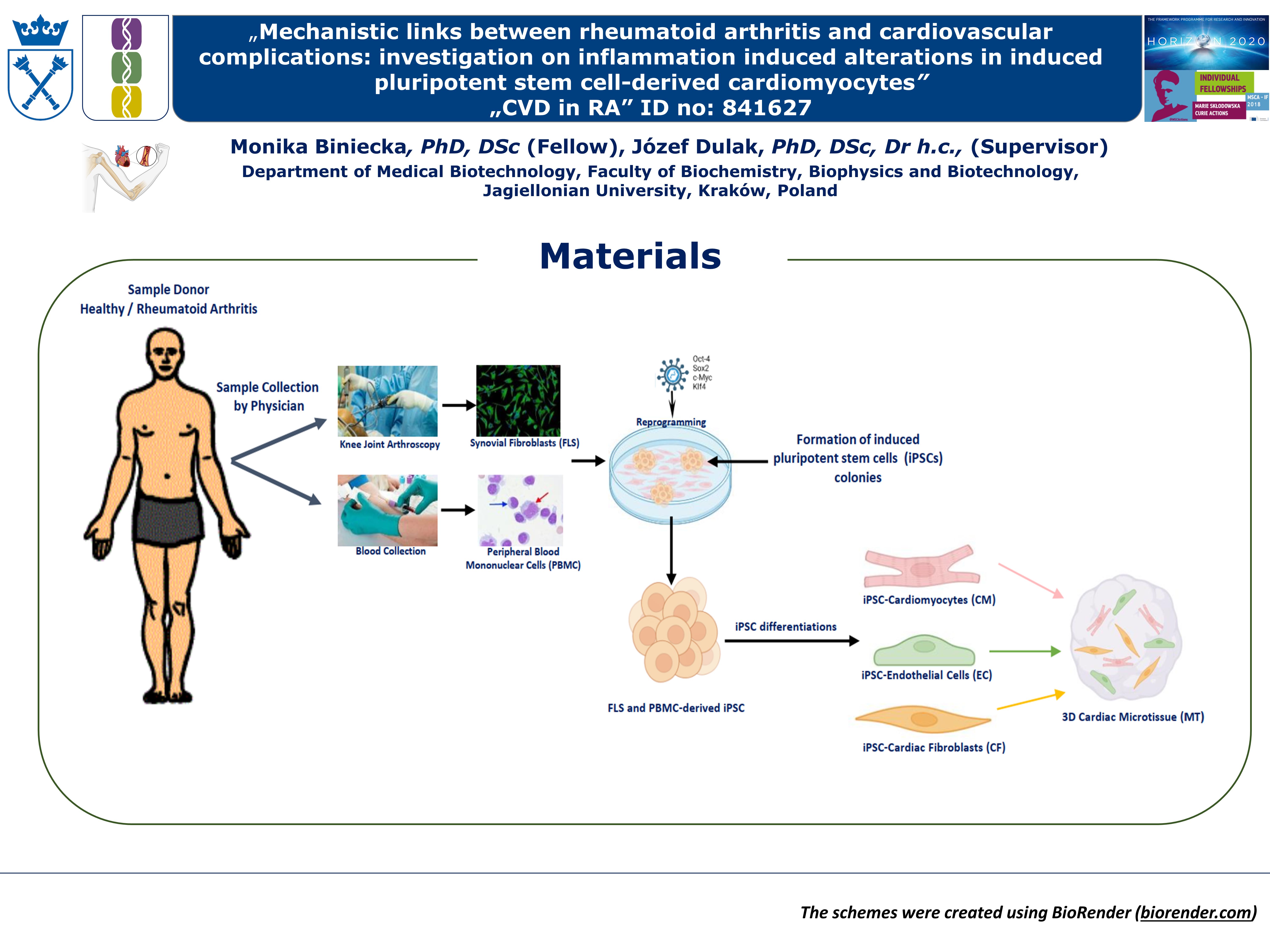 To date, most of the RA research has been traditionally based on a variety of in vitro assays and animal models which may not entirely recapitulate extra-articular manifestations and drug responses. In turn, human cardiomyocytes are difficult to access from the heart of RA patients. Therefore, in this project, we implemented the modern technology of induced pluripotent stem cells (iPSC), pioneered by Shinya Yamanaka’s lab in Kyoto, Japan, who was awarded the 2012 Nobel Prize. iPSCs are a type of stem cell that can be generated directly from adult cells like fibroblasts or blood cells. iPSCs have the same properties as embryonic stem cells, i.e. self-renewing and pluripotent differentiation giving rise to many other cell types, such as neurons, heart, pancreatic, and liver cells. Therefore, nowadays iPSCs have become an important tool for modeling and investigating many human diseases, for screening drugs, and in the field of regenerative medicine.