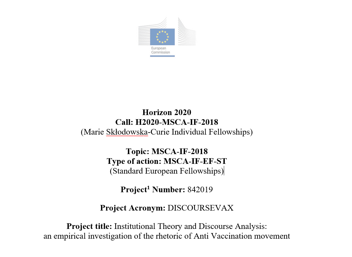 Periodic Reporting for period 1 - DISCOURSEVAX (Institutional Theory and Discourse Analysis: an empirical investigation of the rhetoric of Anti Vaccination movement)