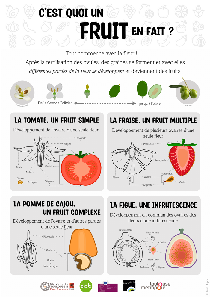 Overall, the main results of FRUITFUL were disseminated to the scientific community and the general public. We have published two papers and have a third one accepted for publication, discussing the taxonomy, phylogenetics, and biogeography of Oleaceae. We presented the results of our fruit evolution analysis in a scientific conference during the second year of the action. Beyond those, we participated to four other events to disseminate our results: two invited seminars and two outreach events (the European researcher's night 2021 and the City Nature Challenge 2022, an event that the Museum of Natural History of Toulouse took part and invited local researchers).