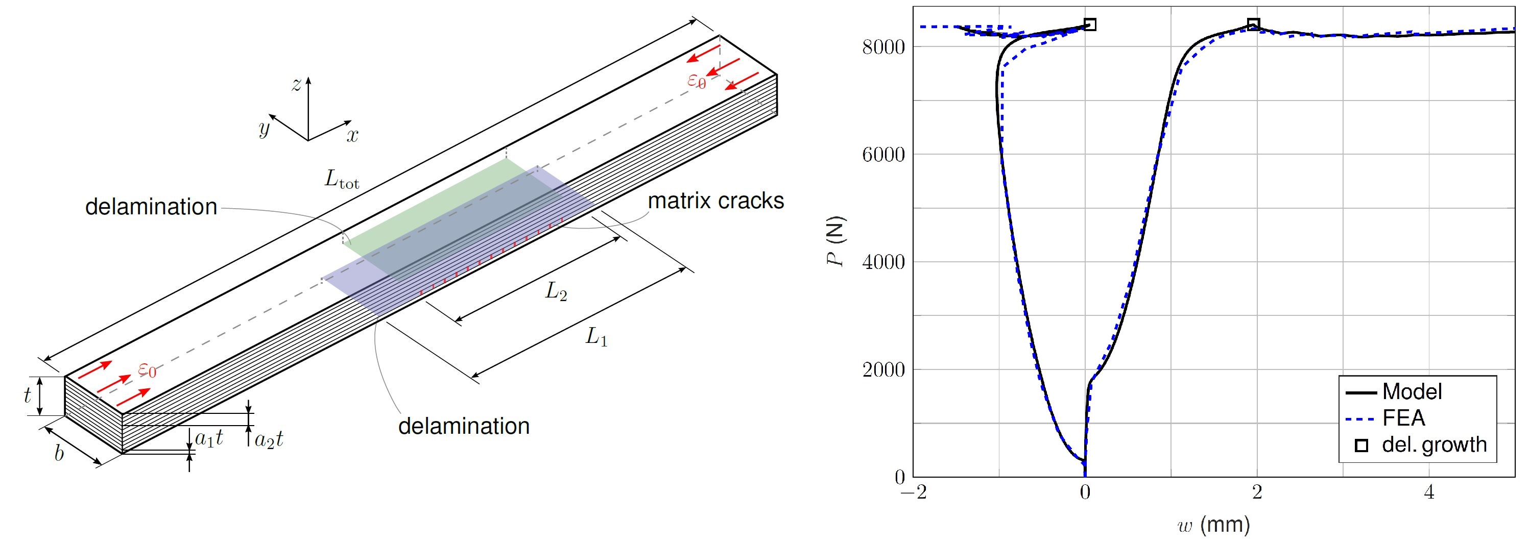 In the DamBuckler project, a novel analytical framework for a structural stability analysis of structures vulnerable to buckling instability and material damage has been developed. The framework comprises the derivation of an extended total potential energy accounting for elastic and inelastic deformation, and conditions that enable general damage growth behaviour to be accounted comprising transitions from active to passive damage mechanisms, loading—unloading regimes and multiple active damage mechanisms, as well as enforcing the second law of thermodynamics. Moreover, a solution algorithm has been developed, such that the research conducted within the DamBuckler project can be practically implemented. The new framework has been successfully applied to the problem of composite panels with multiple types of damage loaded under in-plane compression. The developed models constitute an initial step towards efficient analyses of composite structures with barely visible impact damage, which is a critically important problem within the aerospace industry. The models enable the precise prediction of damage allowable loads, i.e. applied loads causing damage growth and/or failure, as well as the structural stability behaviour of composite panels considering various damage mechanisms (e.g. delamination and matrix crack growth).