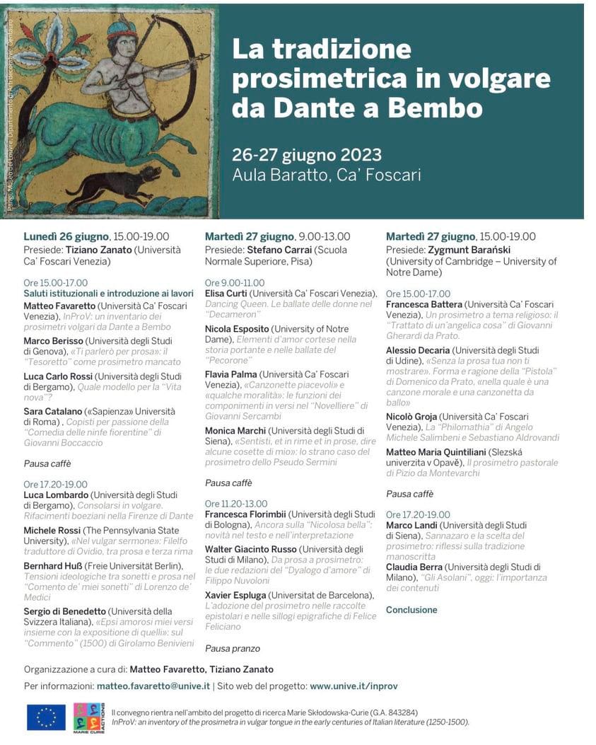 Periodic Reporting for period 2 - InProV (An inventory of the prosimetra in vulgar tongue in the early centuries of Italian Literature (1250-1500))