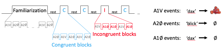 During the implementation of this project, I learnt fNIRS during the outgoing phase, under the supervision of Richard Aslin. Due to important delays in the recruitment of infant participants, I primarily implemented this technique with adult participants, exploring the neural signature of speech and face processing. I was able to evidence clear neural responses to both stimuli from adult participants. The manuscript is under preparation. Due to the COVID crisis, I was unable to use this technique with infant participants, and I was forced to put the project on hold during that time. Instead, I wrote a review paper on steady-state evoked potentials, an EEG analysis technique particularly relevant with infant populations. This paper was published in 2022. During the return phase of the project, I implemented the EEG experimental part of the project, exploring predictive processes in the infant brain. I tested a total of 58 4-month-old infants, and I was able to include 36 of these infants in the study. Infants were presented with audio-visual events, with some auditory cues predicting the appearance of an image 1 sec after on the screen. The analysis of the recoded EEG activity indicate that infants quickly learn these audio-visual associations. Besides, the analyses revealed enhanced visual activity in response to unexpected vs expected visual omissions. Overall, these results indicate that predictive coding is a neural coding strategy available to the infant brain very early on.