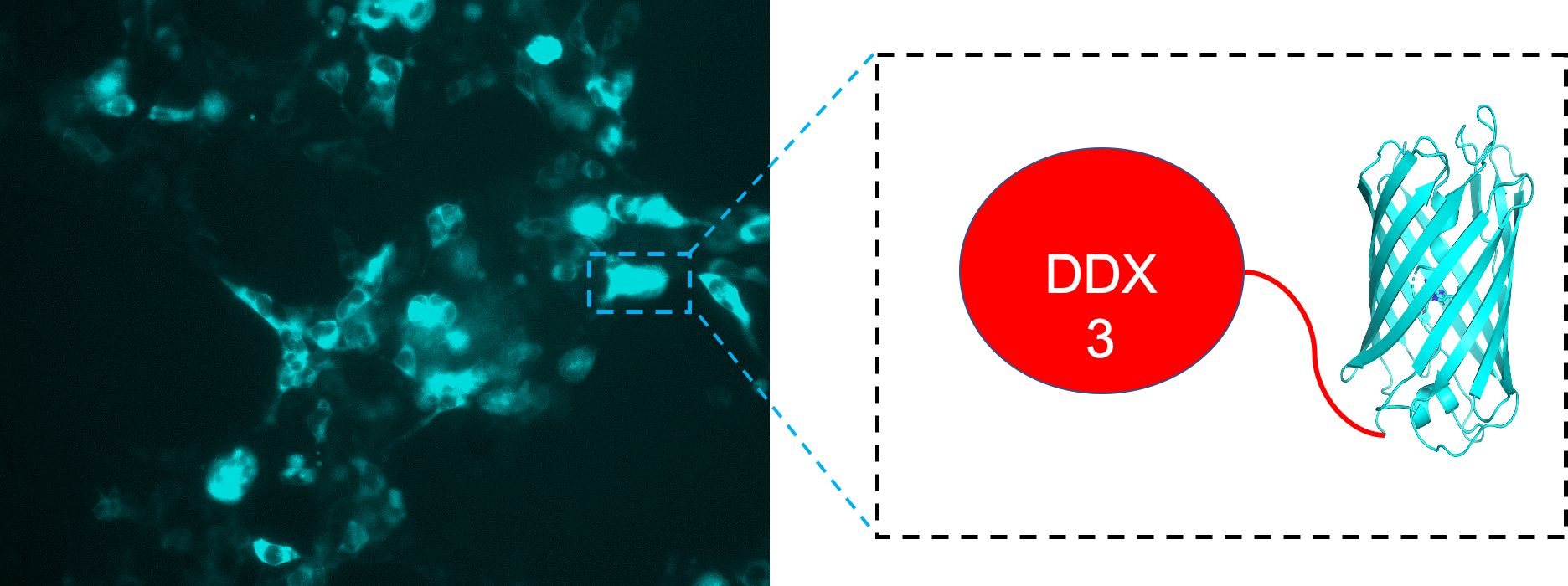 1) Cloning of both DDX3 and MAVS genes in Lentivirus expression vectors carrying fluorescent tags to perform FRET, FLIM experiments, aiming to detect the complex formation within the cell.