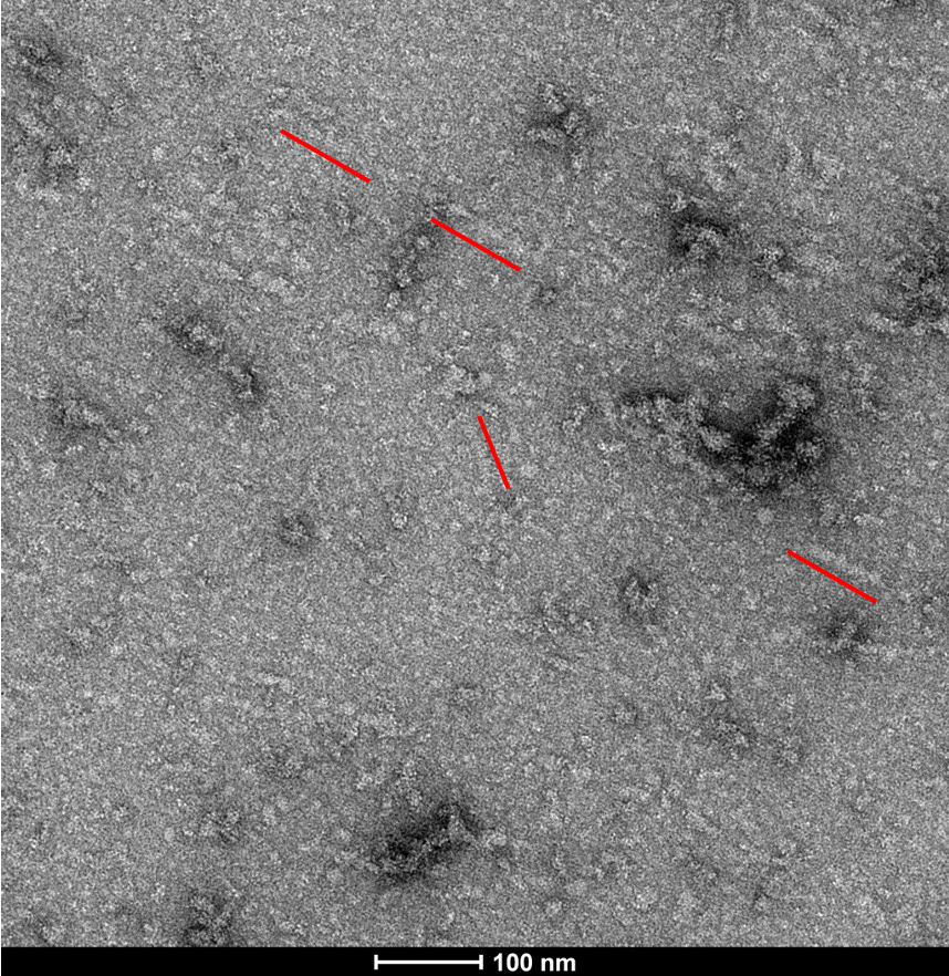 5) Negative staining electron microscope imaging of both proteins on a Tecnai microscope T12 operating at 120 electron volts.