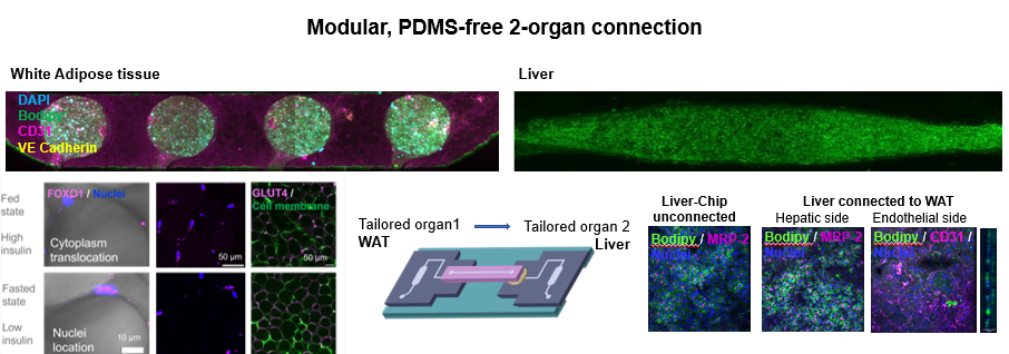 Distinguishing itself from previous work, this project human primary mature adipocytes characterized for their bioenergetic metabolism. Additionally, innovative flexible multi-organ-interconnection concepts enable molecular studies of multi-organ diseases such as metabolic syndrome and non-alcoholic fatty liver disease (NAFLD). These approaches pave the way for the introduction of other cell types, such as immune cells, facilitating a deeper understanding of disease mechanisms and enabling the creation of patient-specific disease models.