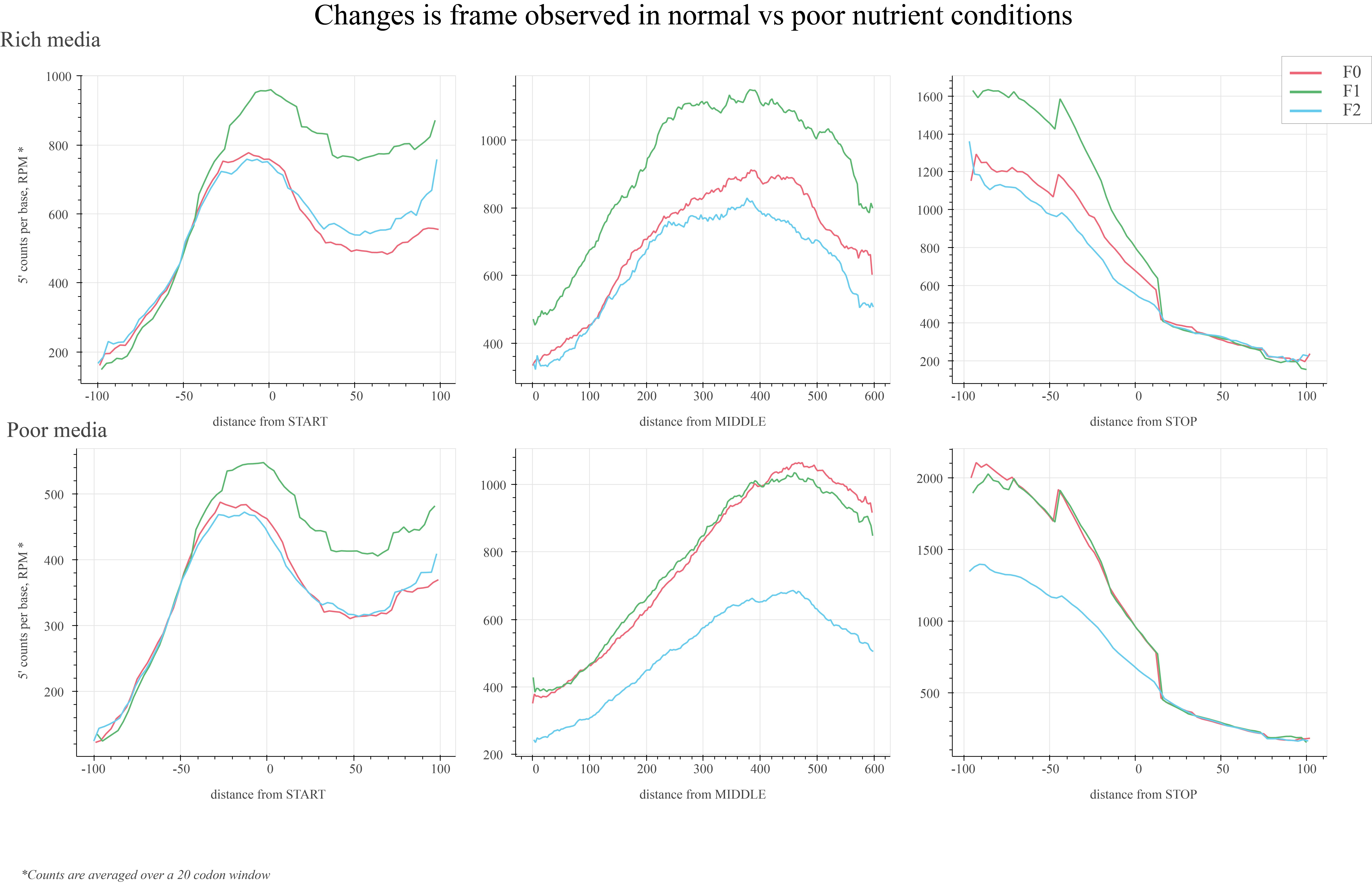 Next, we investigated ribosome dynamics in degrading mRNAs in yeast, under various types of stress, including nutrient deprivation (poor media) and salt stress. Indeed, we observed a clear frameshift in poor nutrient conditions (Figure 1). This was further aggravated upon addition of salt. Such an effect could be a consequence of ribosome “slippage”. The latter should in theory produce small amounts of shifted peptides, which our collaborators have confirmed with mass-spectrometry analysis. Finally, to confirm that the frameshift indeed leads to activation of nonsense-mediated decay (NMD) machinery, we have assessed mRNA stability in strains with or without functional NMD. Indeed, while the NMD dysfunction did not affect mRNA stability in normal conditions, it did increase mRNA stability in stress. These results will be finalized in another manuscript by the end of this year where the MCIF funding will be acknowledged.