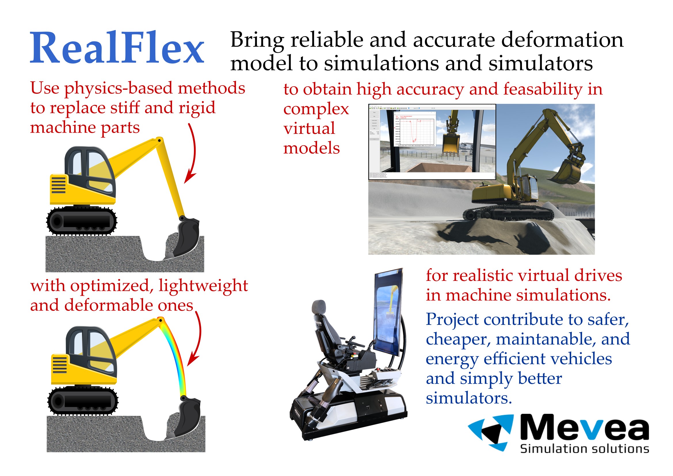 The direct effect of the project is the support of the deformable components in Mevea simulations. This affects all Mevea’s customers, places mostly in Europe area, by providing reliable simulations and training simulators. Mevea’s customers include wide variety of businesses, including mining, earth-moving machinery designers, crane designers, and wood industry. This allow to design and manufacture safer and more reliable machines and allow faster and simpler introduction of skilled worker to the marked. Published papers, amplify this effect to more businesses and markets.