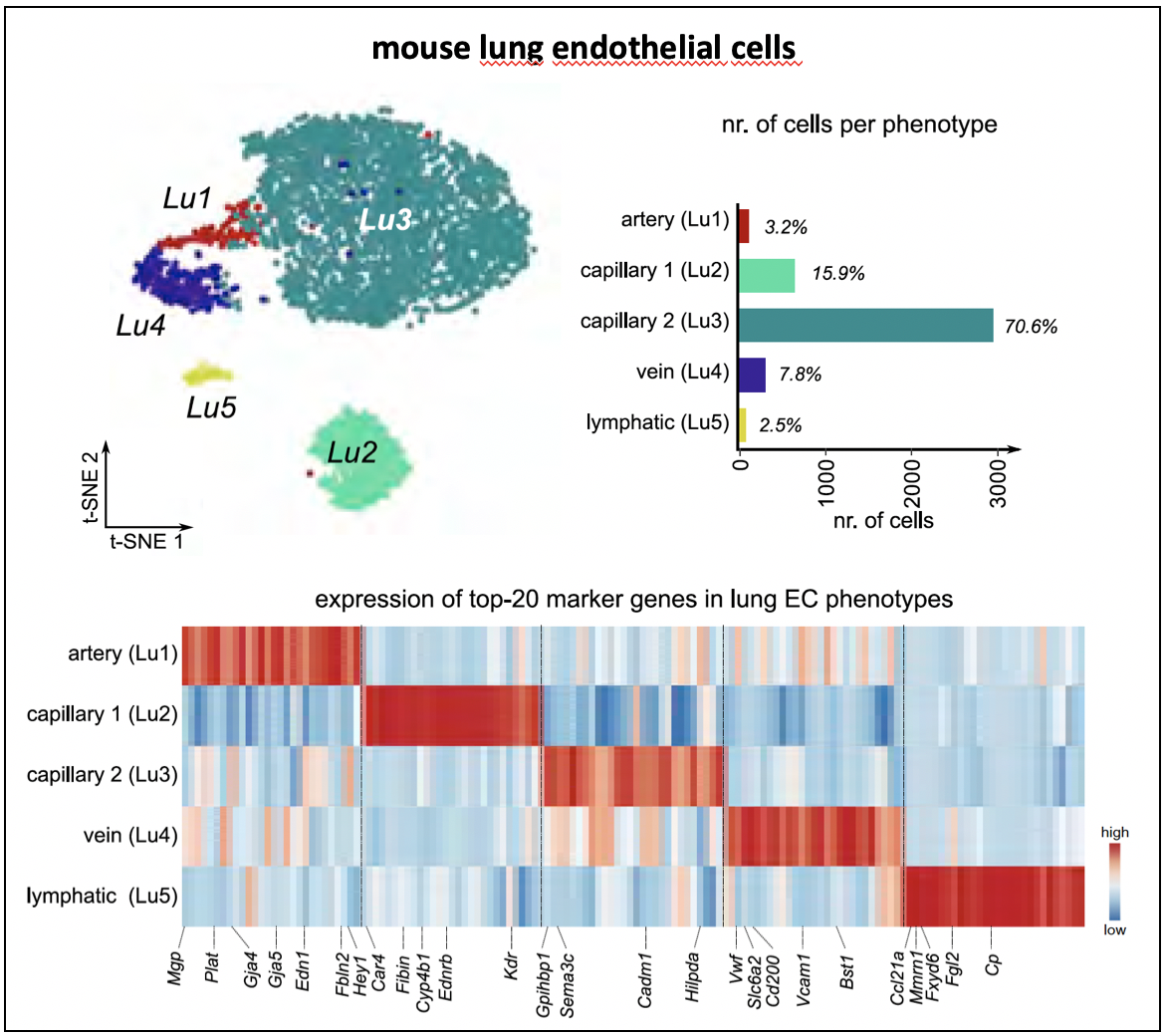 Mouse lung endothelial cell heterogeneity (reproduced from Kalucka et al. Cell 2020 with permission)