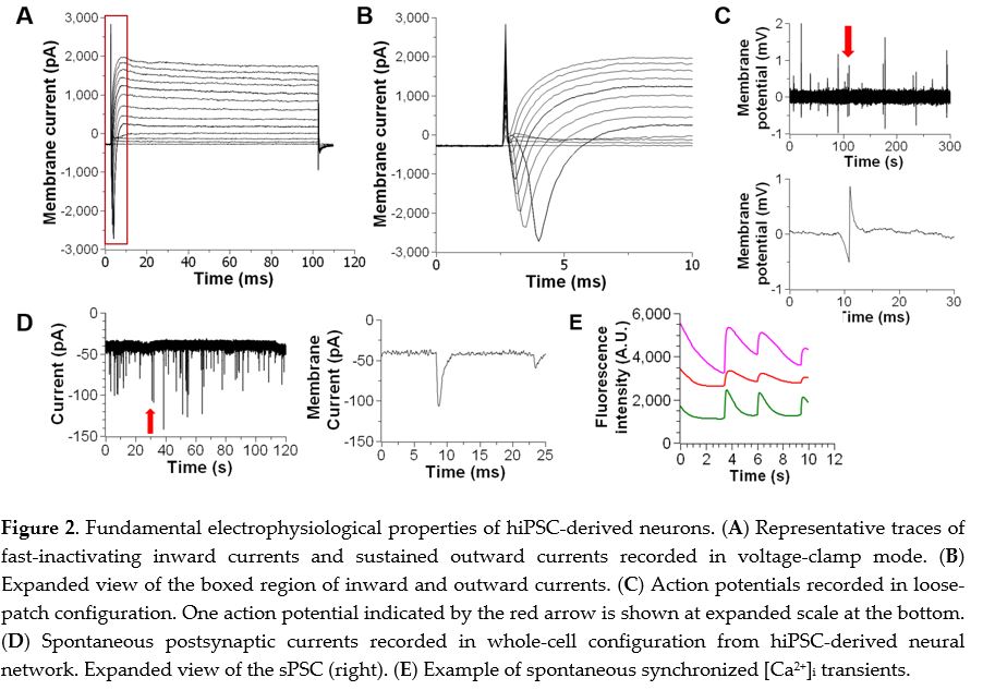 2) In vitro differentiated hiPSC-derived cortical neurons exhibit fundamental electrophysiological properties.
