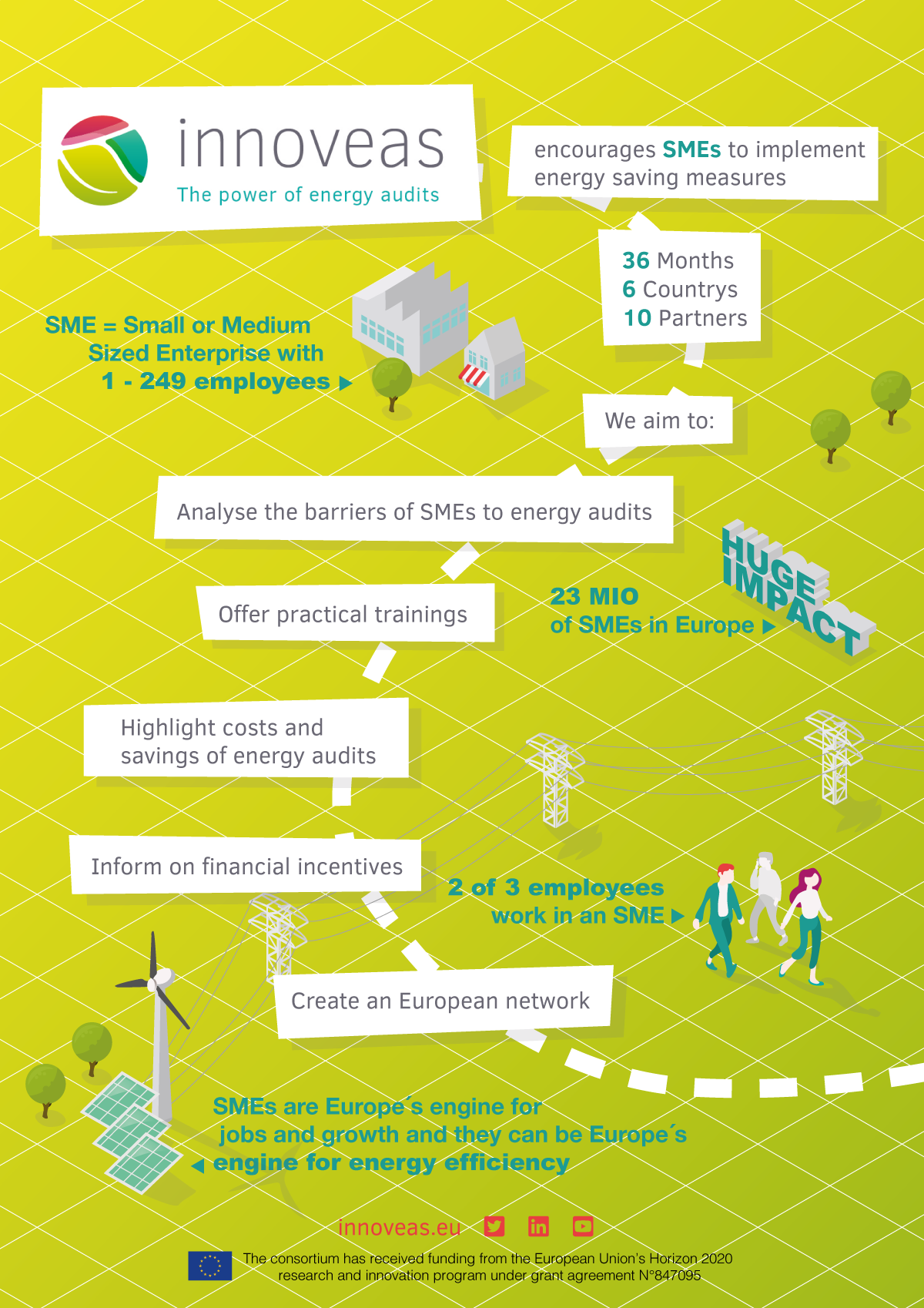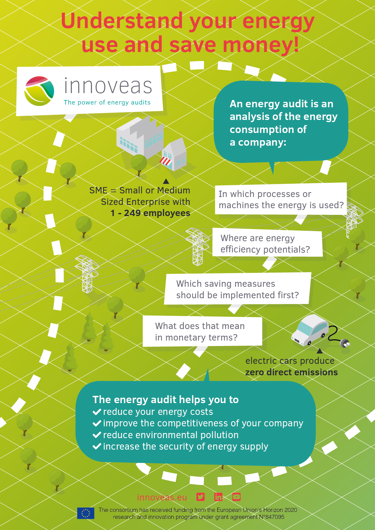 The aim of INNOVEAS is to encourage SMEs to adopt energy saving measures by building capacity in the field of energy auditing in Small and Medium Enterprises (SME).