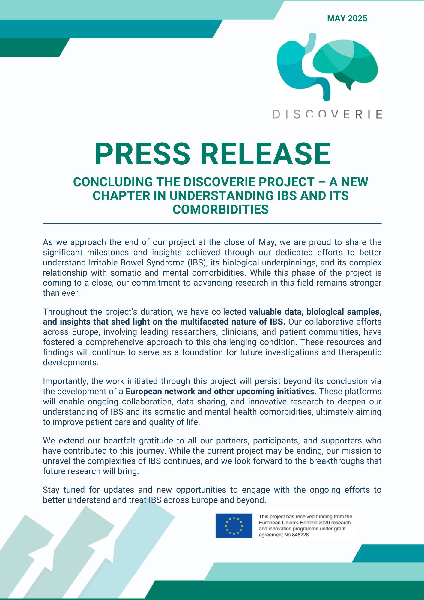 Periodic Reporting for period 4 - DISCOvERIE (Development, dIagnostic and prevention of gender-related Somatic and mental COmorbitiEs in iRritable bowel syndrome In Europe)