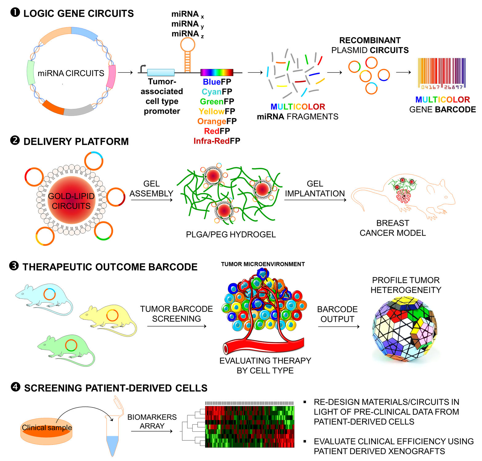 Periodic Reporting for period 4 - GelGeneCircuit (Cancer heterogeneity and therapy profiling using bioresponsive nanohydrogels for the delivery of multicolor logic genetic circuits.)