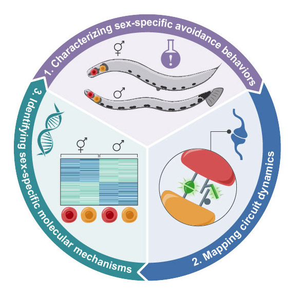 -Objective 1: Explored avoidance behavior, mechanosensation and the integration of spatially opposing cues. Studies revealed that differences in neural circuit topology are sufficient to drive sexually dimorphic behaviors in C. elegans.