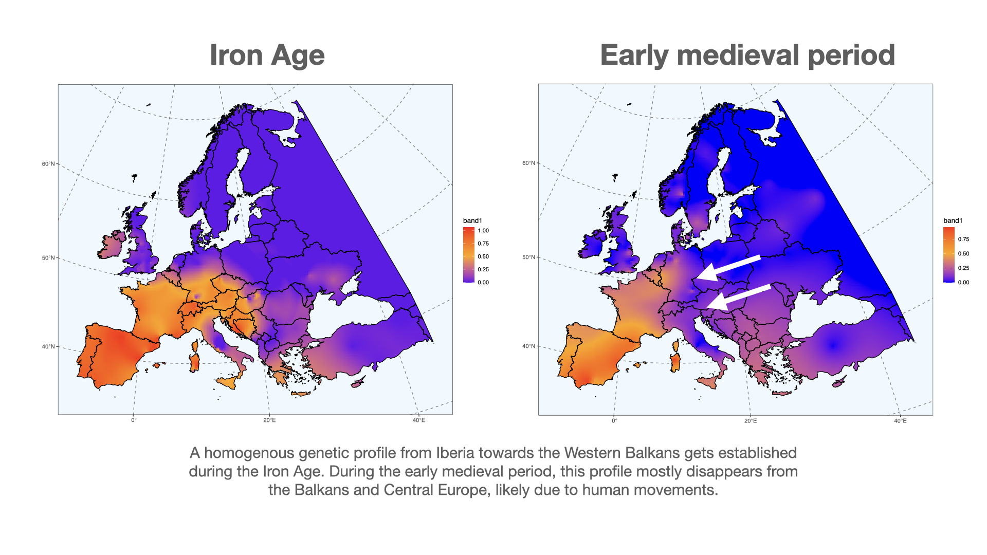 One time period in which the traditional methods to measure population structure, based on common genetic variants, are often insufficient to see differences and similarities, is the pre-Roman Iron Age. This is a time period where we have few or no written sources at all, and most of our knowledge about human connectivity and mobility comes from archaeology. What we do know, for example from Roman and Greek historical accounts, is that people in a vast region from the Iberian peninsula to the Balkans shared common features of art, industry and language, which collectively was termed “Celtic”. Because of the difficulty of standard genetic methods, not much is known so far about population structure and -history during this time. This includes the so-called “Celtic migrations”, a set of historically described events that presumably spread Celtic culture across the continent.