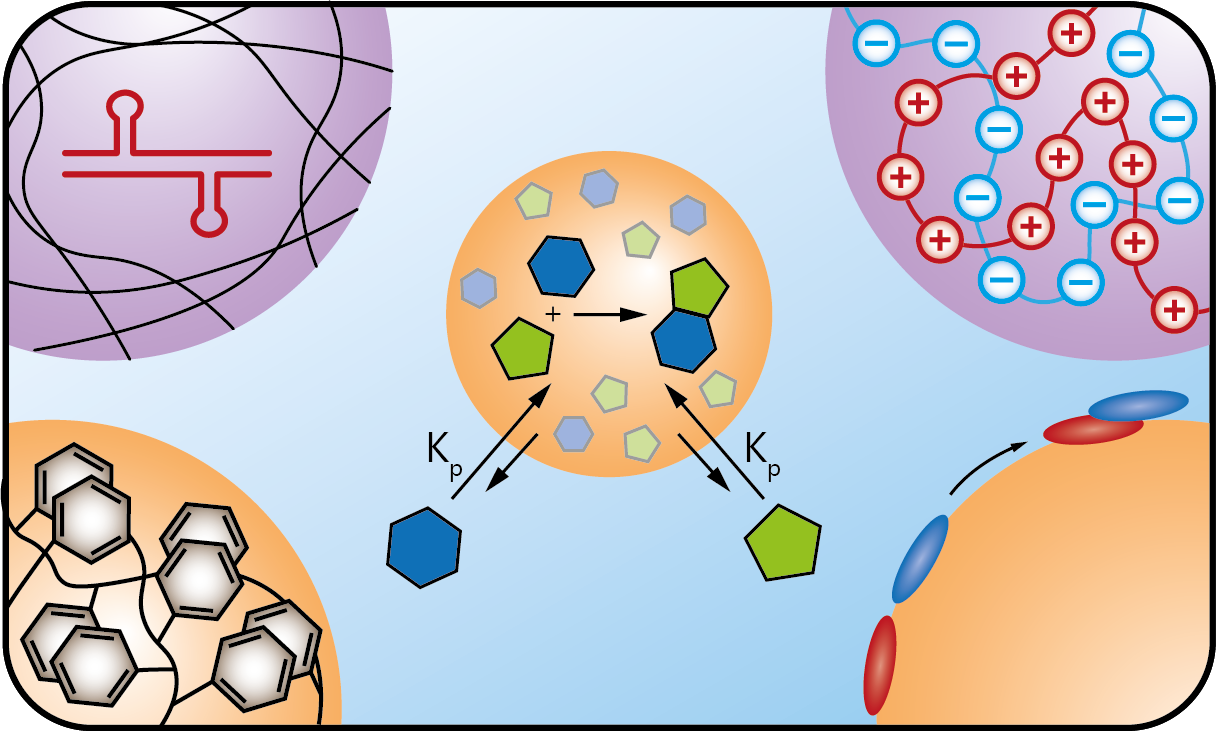 In addition, several new methods have been developed to quantify the volume fraction of coacervates, the surface charge of coacervates and the binding strength of ions and small molecules to coacervate-forming molecules. Together with an in silico platform to model chemical reaction networks in coacervates, this enables us now to look at the rate of self-replication by RNA inside coacervates. This opens the way for new rational design of coacervate-forming molecules and chemically active coacervates.