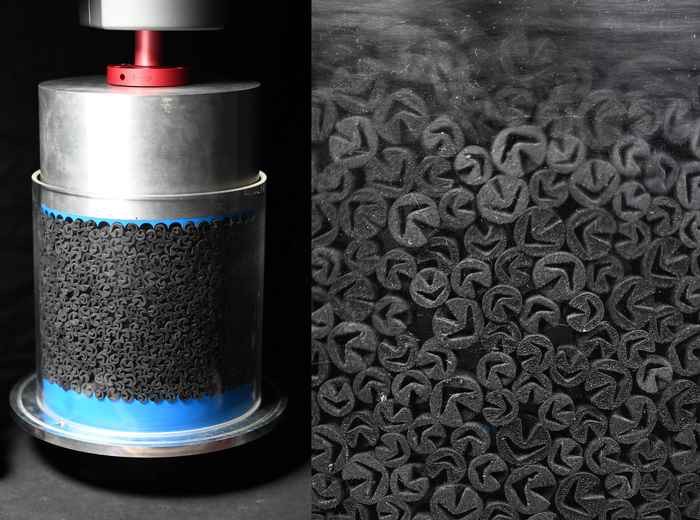 2. We have introduced a new class of metamaterials: granular metamaterials that are made from particle with an unconventional tunable property, in our case they have a negative Poisson's ratio. We have seen that these granular metamaterials have a tenable elasticity and rheology and flow more easily and absorb more energy when they are confined.