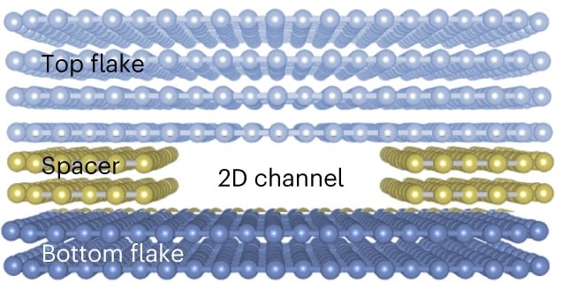 Membrane-based applications such as osmotic power generation, desalination and molecular separation would benefit from decreasing water friction in nanoscale channels. However, mechanisms that allow fast water flows are not fully understood yet. The AngstroCAP teamreported that angstrom-scale capillaries made from atomically flat crystals and study the effect of confining walls’ material on water friction (Nature Communications 2021). A massive difference is observed between channels made from isostructural graphite and hexagonal boron nitride, which is attributed to different electrostatic and chemical interactions at the solid-liquid interface. In collaboration with Prof Radenovic's group (EPFL, Switzerland), we probed the 2D-confinement on organic liquids, where native defects on hBN act as nanoscale probes with super-resolution microscopy (Nature Materials 2023). Our team in collaboration with Prof Bocquet's group (ENS Paris, France), we have reported neuromorphic memory using Å-channels, where electrolytes in 2D nanochannels develop long-term memory, from tens of minutes to hours (Science 2023).