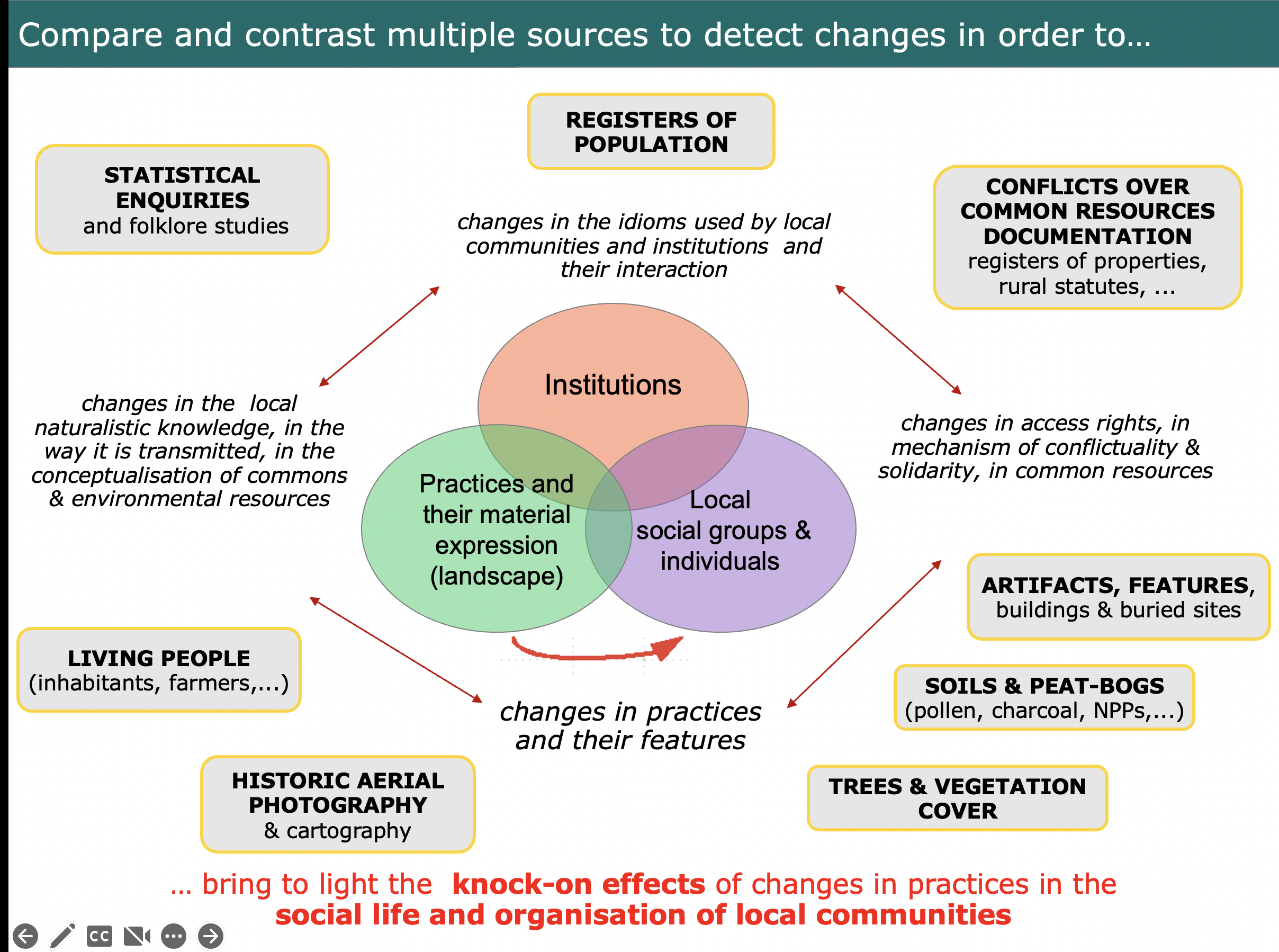 ANTIGONE explores crucial aspects of this process that have previously not been considered: changes in the social practices of environmental resource management (relating to pastures, meadows, grass, woodlands, water etc.), from the beginnings of this marginalisation process tied to the pressure for a “rationalised” management of resources promoted by 18th c. physiographic theories and 19th c. liberal ideology until the present. Practices result from the dialectics between individuals, communities, and central States and how they shape and change the landscape (Stagno et al. 2018).