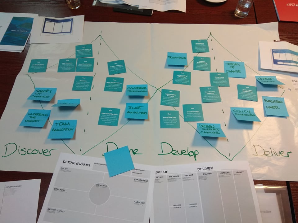 Inbetween the two Peer Learning workshops each partner implemented its pilot action. The Design Thinking approach selected was implemented on the base of 4 stages; Discover, Define, Develop and Deliver. Why applying the Design Thinking methodology? In recent years, notable policy and business experts have been discussing the value of Design and Design Thinking as an approach in improving the way government delivers services in one form or another for/with the citizens. Innovation Agencies, as public institutions face the same challenges with the public sector everywhere; they are faced with fewer resources to meet growing expectations from businesses. The aim of the project was to create a Handbook on how to design and/or redesign user-friendly innovation support programmes. The method and tools to elaborate and develop this handbook were based on Service Design. As a result, the pilot actions aimed at testing this handbook in existing innovation support programmes and evaluate the results of this process. Consequently, the partners managed to influence 3 innovation support programmes and inspire the respective managing authorities to improve certain procedures and tools for the benefit of the end-users; the SMEs. The cooperation with the managing authorities was fruitful, although not easy, expecially when considering the difficulties of BREXIT and COVID-19 pandemia.