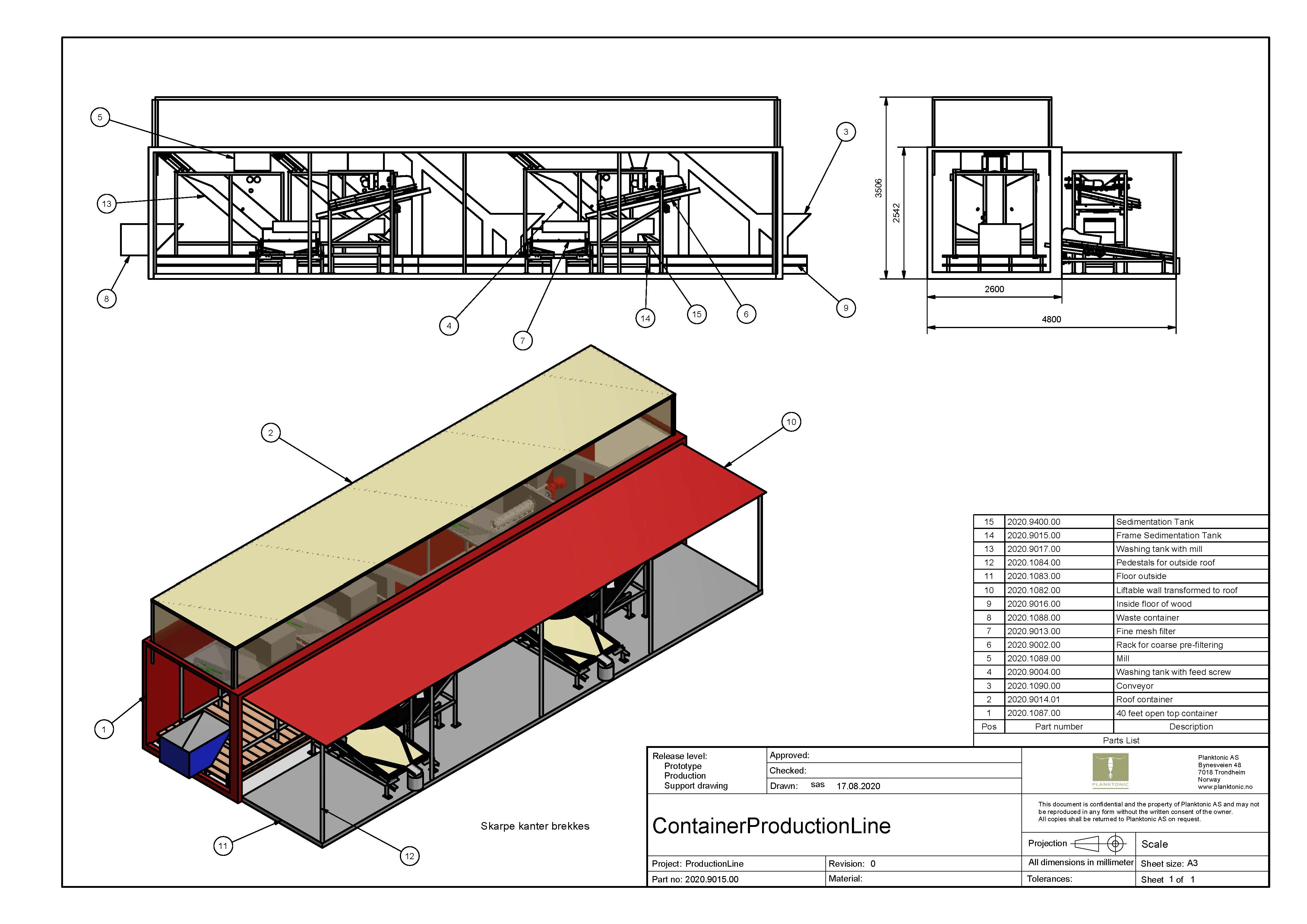 A transportable processing unit were explored in the project. The intention of a transportable processing unit is to semi-process the MAXIPLAN products close to the cultivation site. A transport container was modified, with liftable roof and sidewalls, and fitted the needed processing equipment for extracting eggs/nauplii from adult barnacles. We managed to reduce the foot-print of our processing equipment so it could be fitted inside the transportable container.