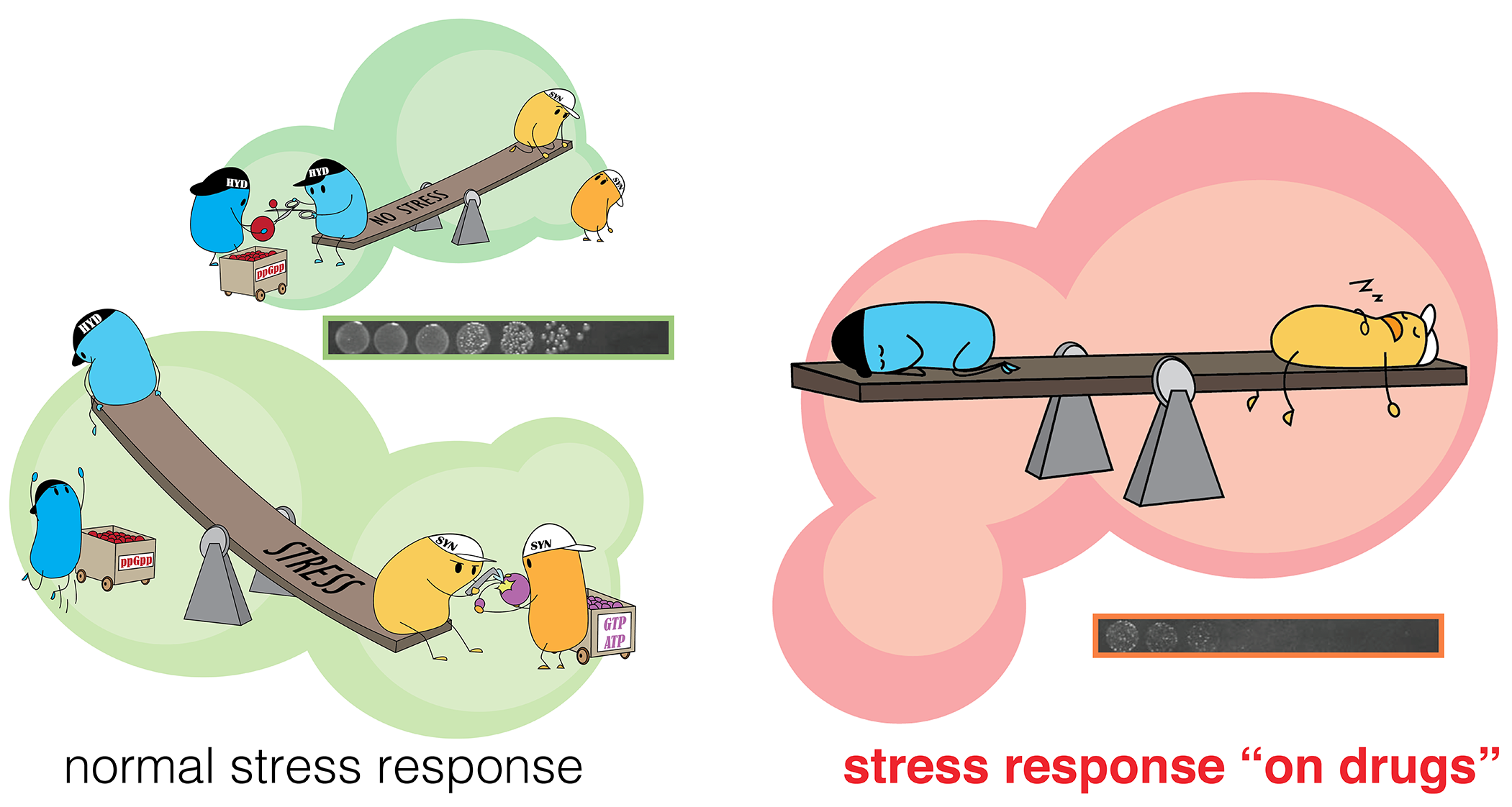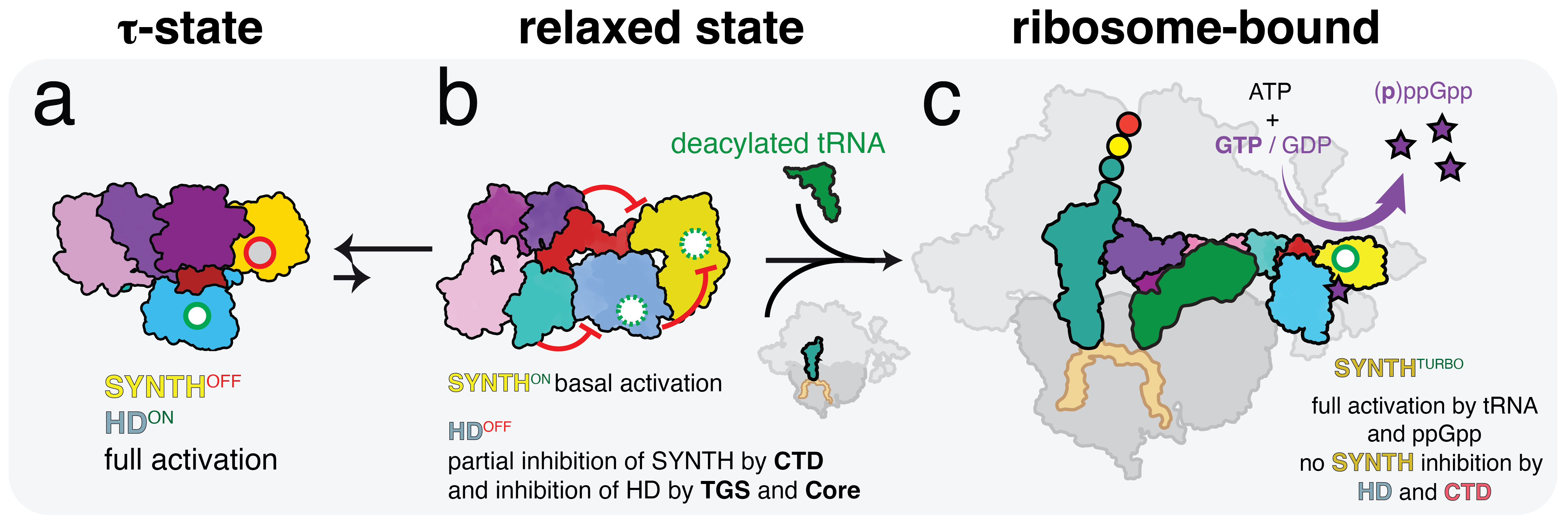 While cryo-EM structures of the RSH synthetases have revealed the overall mechanism that controls how ppGpp is produced during stress, stabilising RSH enzymes in the ribosome, these structures did not have sufficient resolution at the active site level and for decades high resolution details on the catalytic states of RSH enzymes was lacking. Thus these proteins remained refringent to structural biology studies: purifying the enzymes proved to be very challenging, and the lack of information about its three-dimensional structure hinder developing molecules that would interfere with the (pp)pGpp metabolism. All this is now feasible given in the context of the structural biology breakthroughs of the DiStRes team.