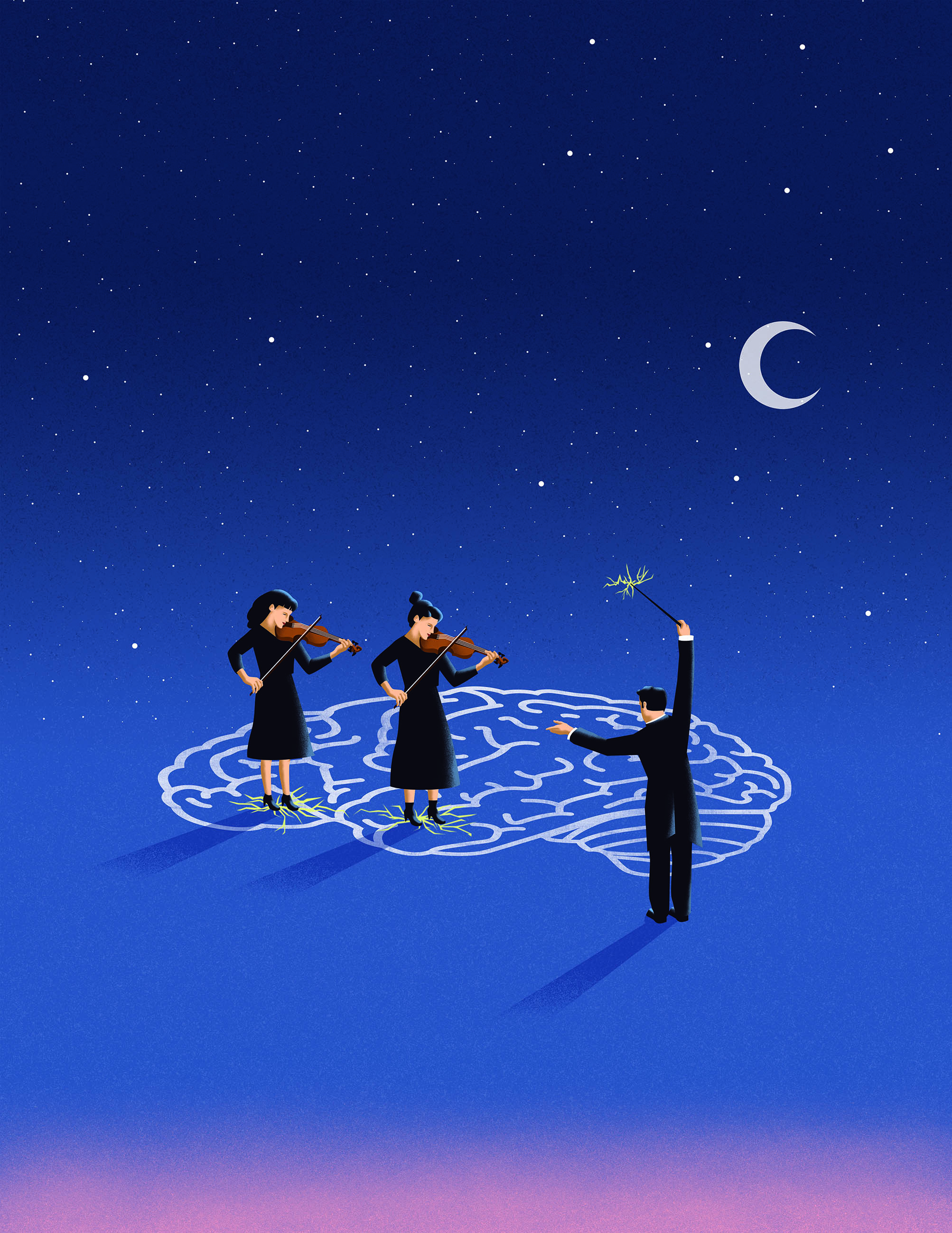Next, focusing on sleep and memory, we were able to enhance brain synchrony and human memory by deep brain stimulation during sleep. Intracranial stimulation during sleep using electric pulses in the prefrontal cortex, precisely timed with slow-wave activities in the medial temporal lobe around the hippocampus, enhanced coupling of neuronal oscillations across regions of the human brain and improved memory performance. This breakthrough discovery has been presented in leading international scientific conferences and is published free-access (and also made it to the cover) in the June 2023 issue of the journal Nature Neuroscience.
