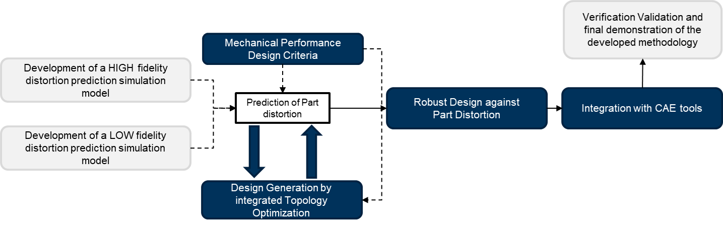 The models and methodologies developed within PADICTON will provide a means to accurately and quickly predict induced distortions, and to pro-actively design to minimize their occurrence. This will result in a lower level of risk in designing integrates and complex shaped AM components and reduce the cost of designing and manufacturing optimised polymeric components. A reliable method for accurately predicting and preventing distortion will enable the reduction in design and development cost through reduction of scrapped components and expensive design alteration during prototype based development cycles. This is in line with ‘Flightpath 2050’ goal that “the whole European aviation industry is strongly competitive and has a share of more than 40% of its global market.”