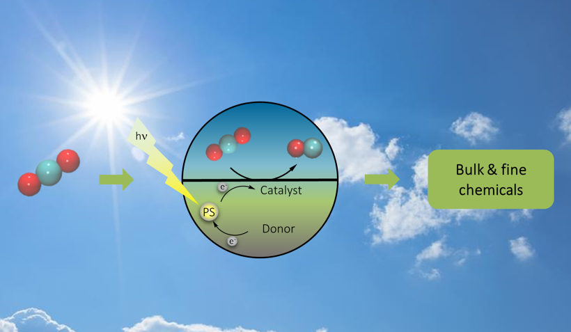 The ERC-funded project CARBOFLOW focuses on the photocatalytic reduction of carbon dioxide in ionic liquids and its successive conversion into high value carbonyl compounds. Several goals need to be realized, including fundamental studies and optimization of the ionic liquid co-catalysed photocatalytic reduction of carbon dioxide to produce CO as building block under mild conditions. The reactivity of formed CO in carbon dioxide with various organic substrates needs to be explored before finally developing a streamlined and continuous process for the direct formation of carbonyl compounds from carbon dioxide.