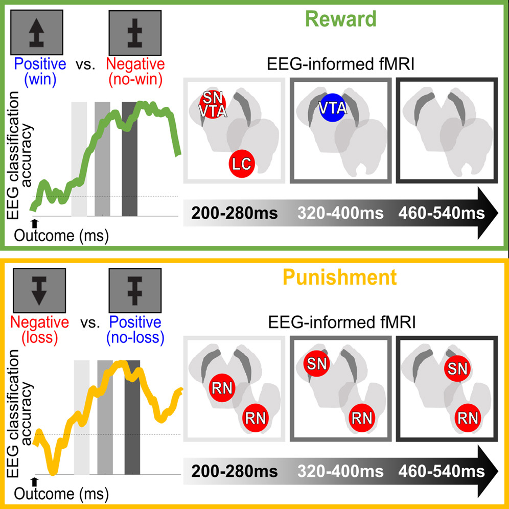 Moving ahead we plan to tackle an influential theoretical framework for reinforcement-guided learning posits that dopaminergic midbrain neurons form an aggregate representation of spatially and temporally overlapping signals of the physical salience of a reward predicting cue and the actual reward associated with that cue. Due to this spatiotemporal overlap the two individual signals are difficult to decouple, even at the level of single-neuron recordings. In this work, we are using a novel imaging protocol with simultaneous EEG and ultra-high resolution fMRI to offer neurobiological validation for this framework in humans. Moreover, we are investigating how the relevant pathways are affected during rewarding and punishing contexts as we have previously identified behavioral asymmetries in choice accuracy across the two contexts (i.e. accuracy higher for reward than punishment contexts). This asymmetry raises the possibility that there exist interesting interactions across contexts, and we will be aiming to offer a formal account of the neural mechanism(s) driving these interactions.