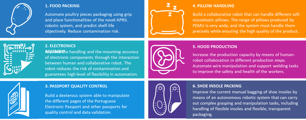 APRIL objectives aimed at providing a technological infrastructure and interoperable methods, tools, and services that enables affordable multipurpose autonomous dexterous robots that support fine manipulation of soft and deformable objects in six different manufacturing domains.