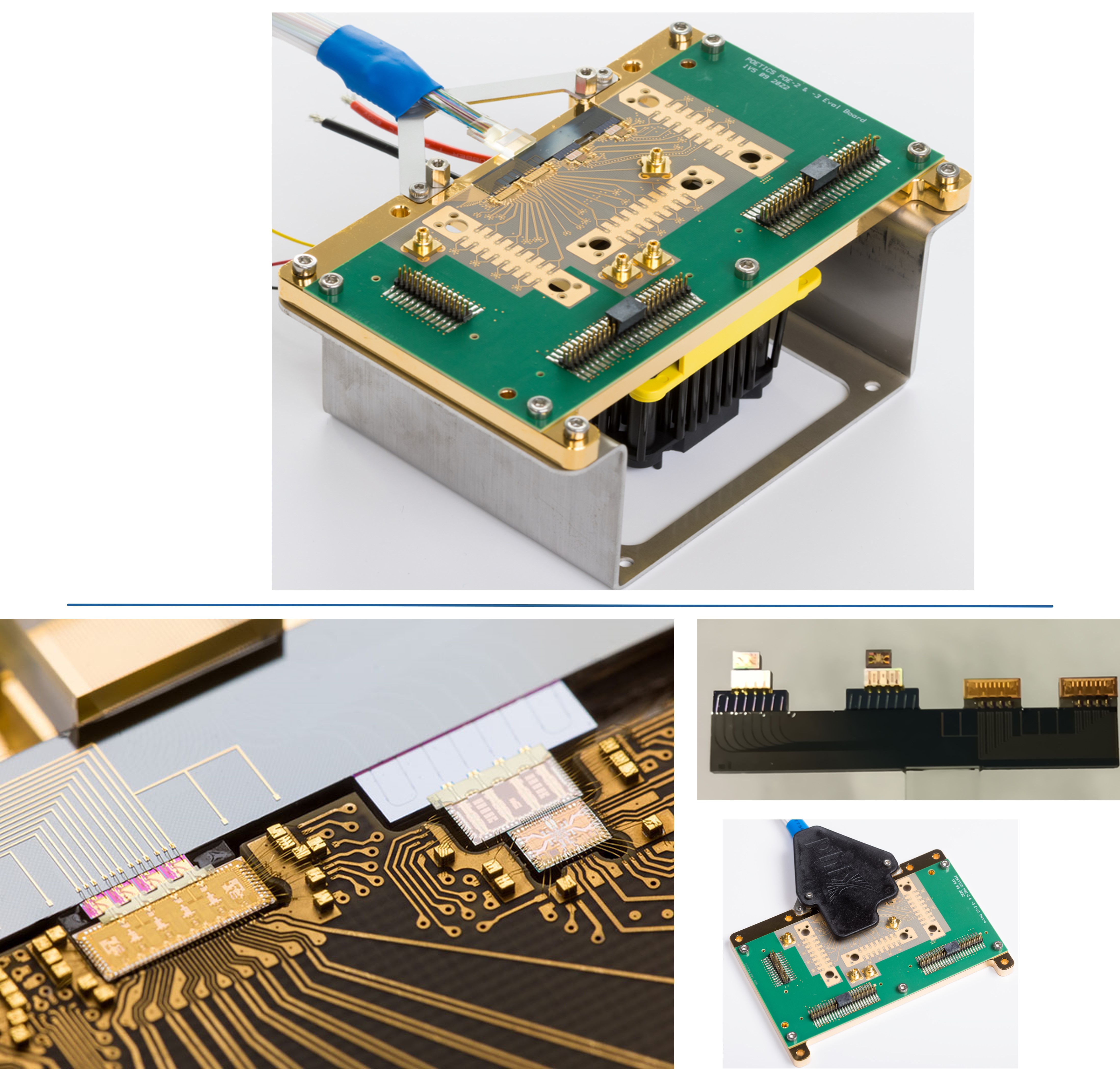 WP5: A key milestone and innovation of POETICS has been achieved with the successful assembly and packaging of two (2) prototypes of the 1.6Tb/s POE-2 module (see Fig.4). In this context, PHIX has introduced innovative RF FlexLine flip-chip bonding processes and techniques, and a high-speed evaluation PCB board has been successfully fabricated and populated. In addition, a 3D 16x16 Benes optical switch demonstrator module (POE-4) has been successfully assembled and delivered and the optical 800 Gb/s POE-1 transceiver has been integrated, and packaged with its corresponding 5 nm DSP chip (open platform POE-1 and the POE-1 CPO module). Finally, the flip-chip integration techniques and processes for the integration of InP dies onto PolyBoard and TriPleX photonic platforms defined and successfully implemented for the integration of InP phase section arrays onto the PolyBoard.