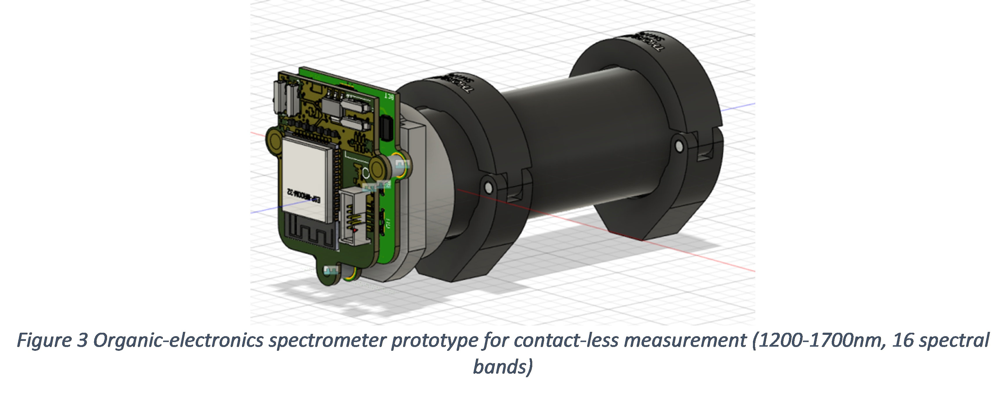 iii. Development of Organic electronics based Micro-spectrometers. New hardware prototype has been developed combining an optics module with the OE spectrometer to enable contact-less measurements. SENORICS will extend its product line with improved products OE-based micro-spectrometer to be integrated in SWIR spectroscopy systems and solutions by system integrators like IRIS.