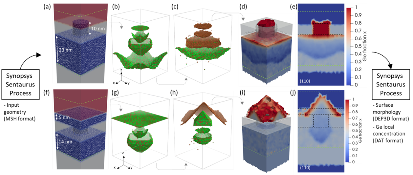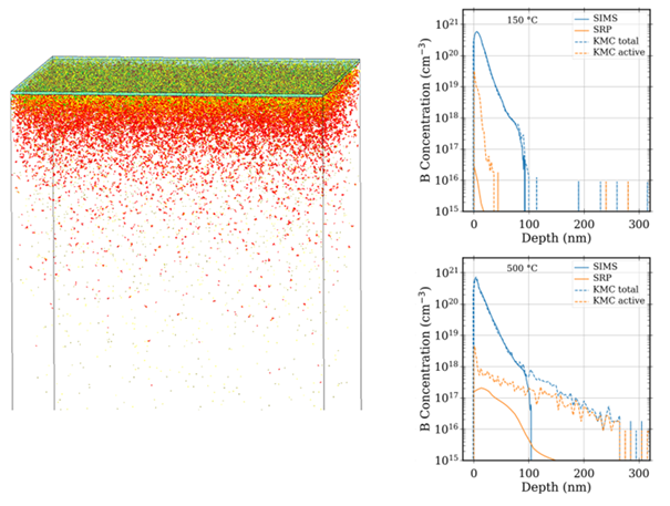 For ion implantation processes, the simulation goals were to improve models for implant temperatures from room temperature to 500°C. The simulations used a hybrid approach, combining Kinetic Monte Carlo (KMC) and continuum methods to reproduce damage formation, diffusion and activation.