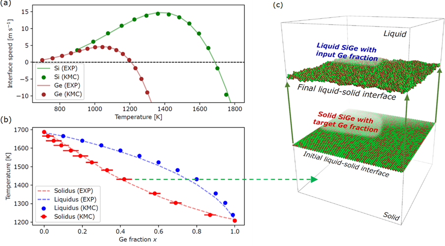 Computational methodologies for the simulation of LA were based on a hybrid atomistic-continuum methodology, combining the use of atomic resolution for particle kinetics (including phase changes from solid to liquid and vice versa, based on a KMCsL solver) with a continuum representation of the thermal and electromagnetic fields generated during laser irradiation. Within this methodological scheme, atomistic aspects that were previously “invisible” to LA simulation techniques, like the generation or annihilation of point and extended defects, or the presence of surface roughness and facet-dependent regrowth mechanisms, are now naturally incorporated within the LA modelling procedure.
