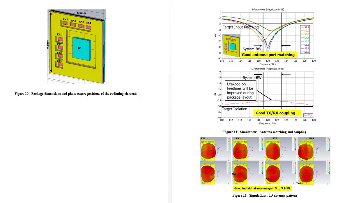 RF circuits for IC, antenna and interconnects will be co-designed by 3D full wave EM simulations. This approach enables RF simulation and optimization of the whole IC / antenna package before manufacture.