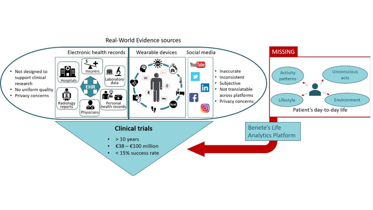 In order to facilitate the use of RWE at its full potential, Benete developed the Life Analytics Platform, an intelligent passive monitoring system that makes use of unobtrusive sensors placed in a patient’s immediate environment. Life Analytics Platform aims to accelerate clinical research via objective, accurate and interpretable real-world data on patients. With this feasibility study, Benete aims to better understand the clinical trials market as its target market, develop a market launch strategy for this market, identify potential partners and customers to finalize its R&D activities, and identify regulatory and legal requirements for its product roll-out.