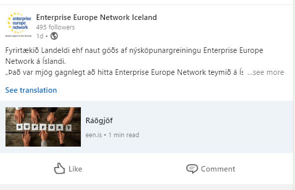 SMEs stories have been collected and shared on the Network LinkedIn page, the companies are very happy and are disseminating the positive feedback on the Networks work on their own social media platforms.